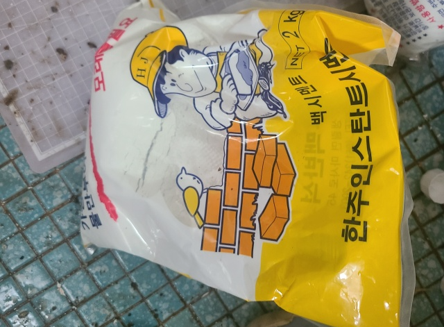 백시멘트로 변기 주위를 메운 다음 스펀지에 물을 살짝 묻혀서 닦아주면 깨끗하게 마무리가 됩니다. 백시멘트가 하루정도 마른 뒤에 변기를 사용하면 됩니다.